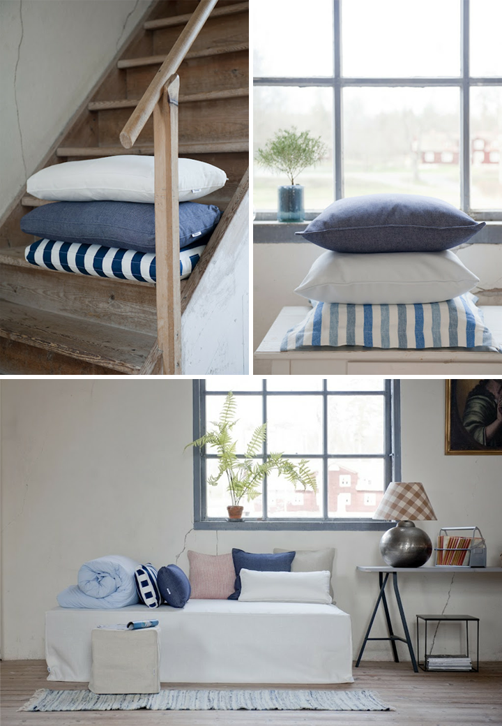 A beautiful collection of images inspired by the colours of sea, sky and sand. The entire colour palette of blue is combined with white, beige and the warmth of wood creating a summer house's atmosphere. All these gorgeous ideas are coming from the site of Bemz, a company that offers new look for IKEA's sofas and chairs creating custom designed covers and pillows. A drop of inspiration because a mini renovation will refresh our homes and ourselves!